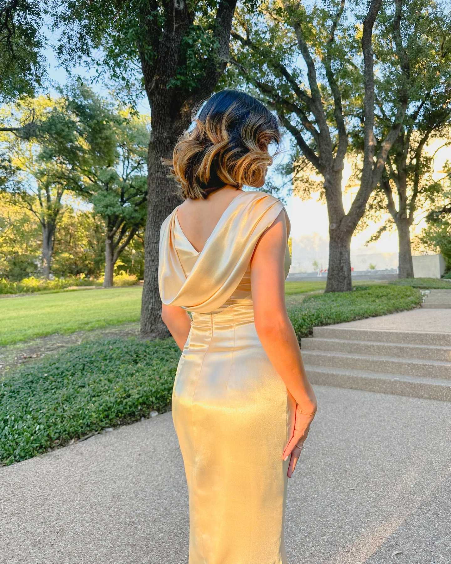 4. Dress Length - Stand up straight without shoes, with both feet together. Measure from the base of your neck, in the middle of the most prominent bone, down to the length indicated in the product details.